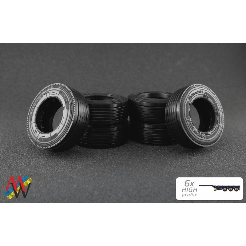 MW6xHP - trailer Tyre set 6x high profile /1:50 Mwheels
